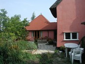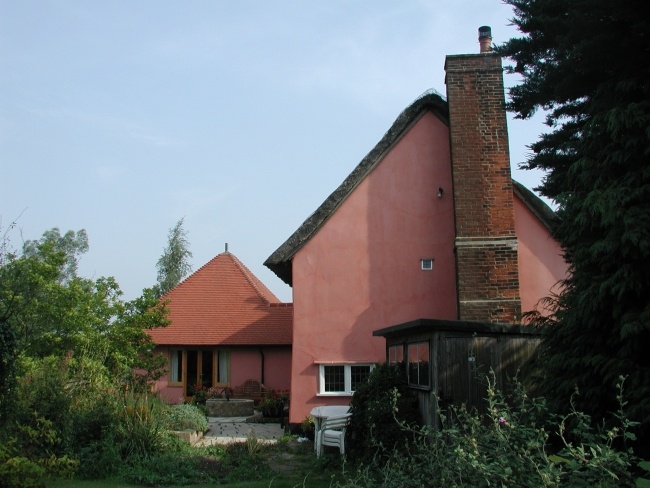 The extension to the house provides a new kitchen and dining/breakfast area and alterations were carried out to an existing garage to form an additional ground floor bedroom. The entrance was also remodelled. The extension is a timber framed building with an open vaulted pyramid roof, clad in hand made plain tiles.