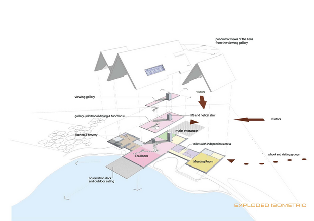For this competition we sought to create a prominent, landmark building which visitors would instantly recognise in this wetland environment. Its shape, form and materials give it a warm and friendly character to make the building more enjoyable and encourage repeat visits.